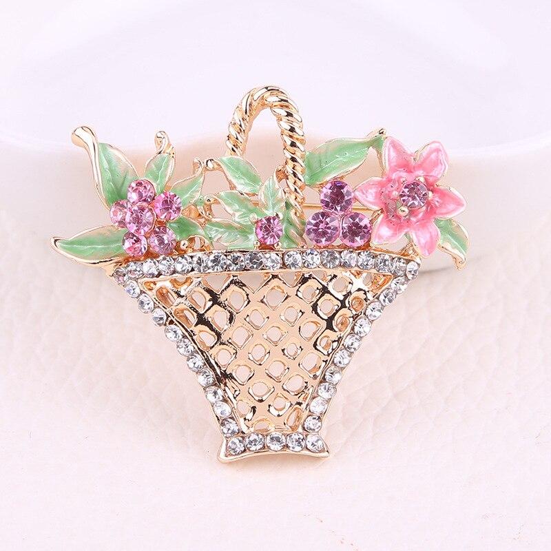 Blucome ажурная брошь-корзина с бриллиантами и цветком, сохраняющая цвет, гальваническая брошь, модная брошь с жемчугом, одежда, булавка розовый