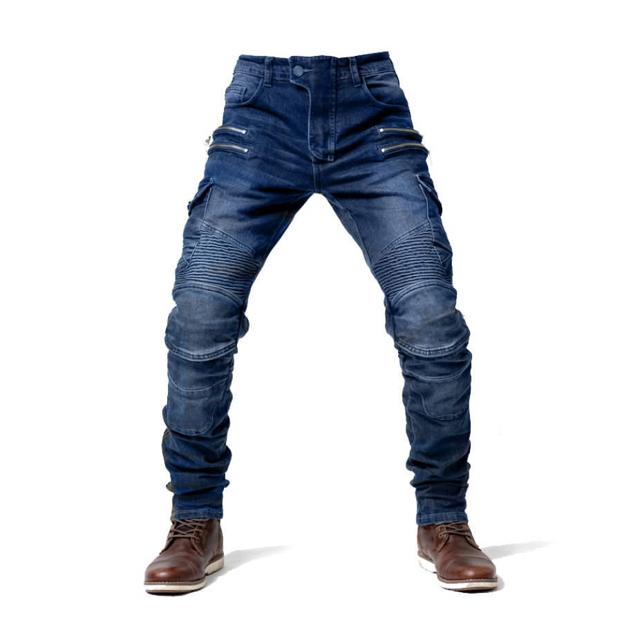 pants,blue pleated cargo jeans