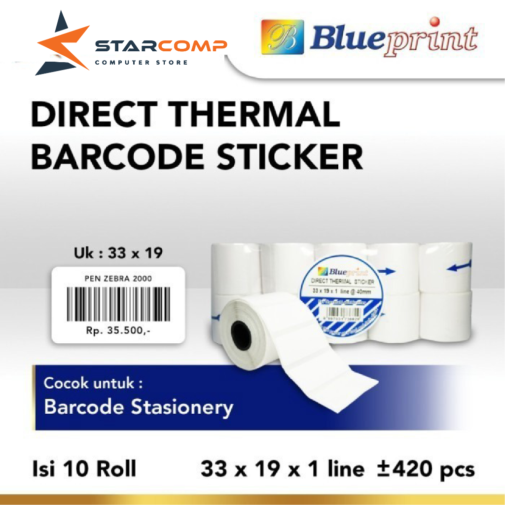 Blueprint Kertas Label Sticker 33x19 mm 1 Line Direct Thermal Sticker 420pcs