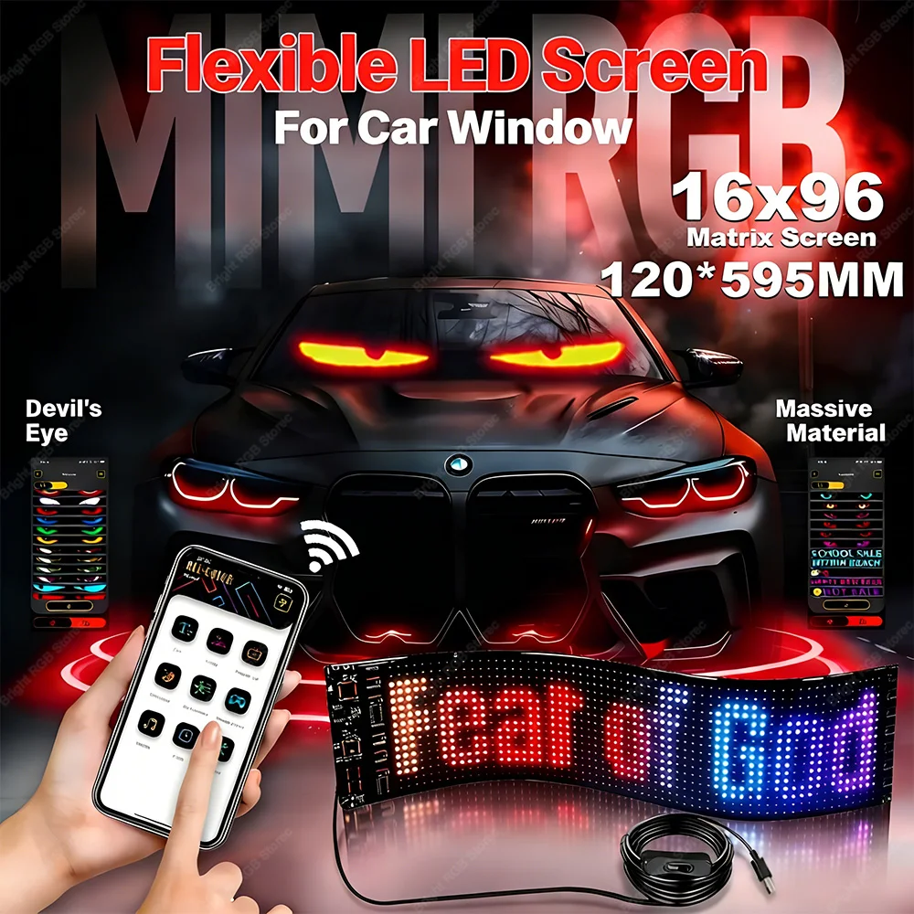 LED Truck Car Devil Eye LED Pixel Panel Light Car windshield Truck Eye For Board Windshield 12V Car Graffiti Scrolling truck lig