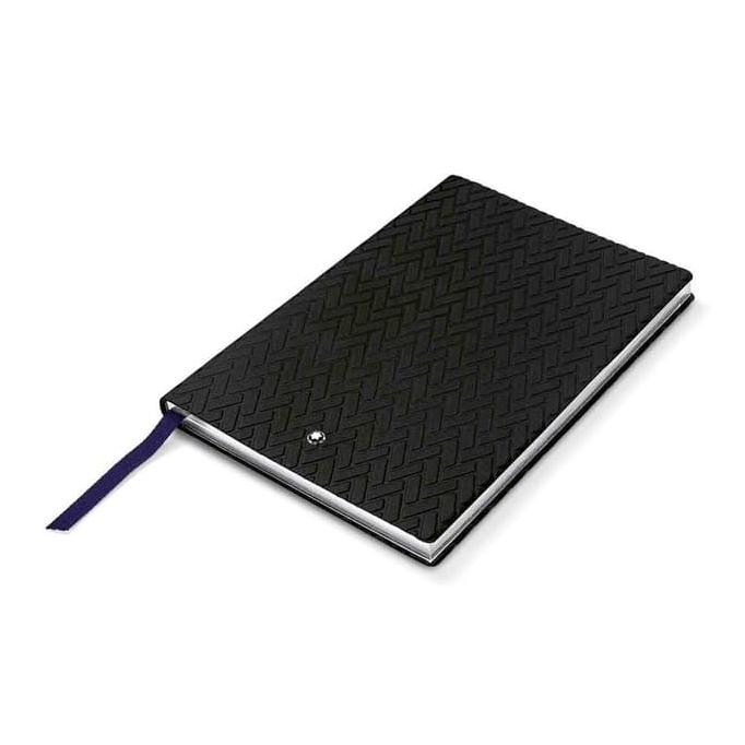High-quality notebook with cover made of soft Italian calf leather with unique Montblanc for BMW pattern embossing. Elegant design with silver cutting edge and royal blue bookmark, Montblanc for BMW imprint and Montblanc emblem with palladium-coated ring. The first page tells the history of the partnership between BMW and Montblanc.