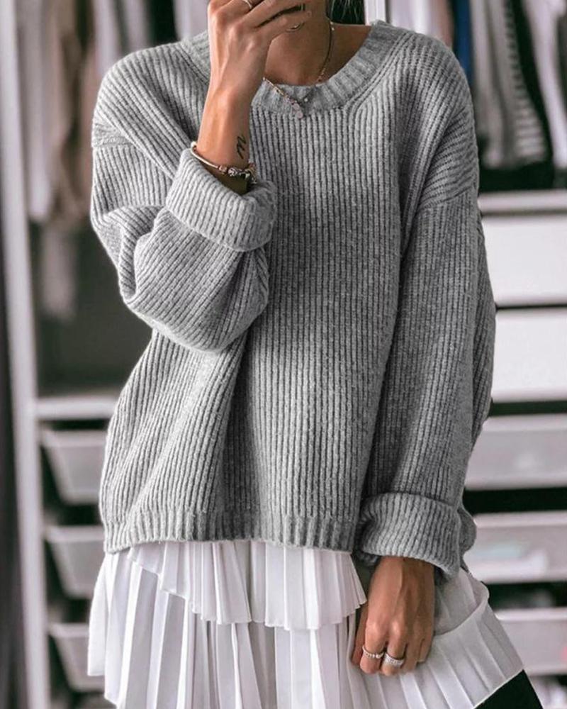 Boat Neck Ribbed Knit Sweater, Gray