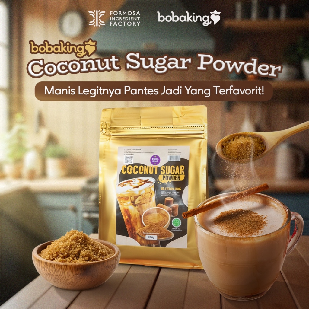 BOBAKING Coconut Sugar Powder memiliki tekstur yang lebih halus. Coconut Sugar Powder ini merupakan olahan Gula kelapa yang dibuat menjadi bubuk. Diolah dengan bahan berkualitas baik dan aman. Boba King Cooconut Sugar Powder ini dapat langsung dituangkan untuk dinikmati dengan dijadikan topping pada minuman. Penyajiannya sangat praktis dengan kualitas rasa yang sangat nikmat.