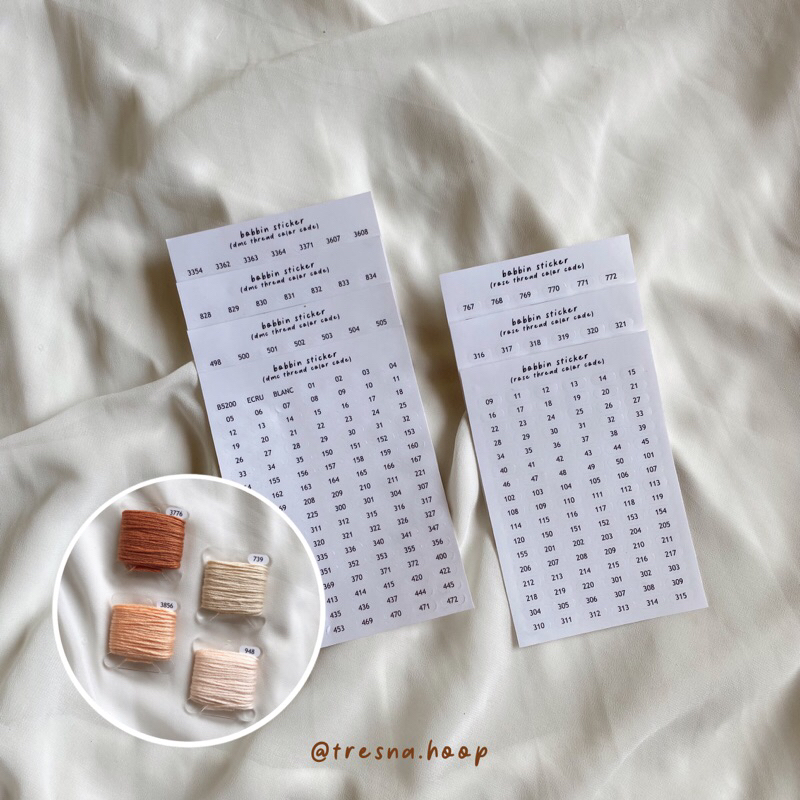 Bobbin Sticker atau stiker untuk menandakan kode warna benang sulam pada bobbin card