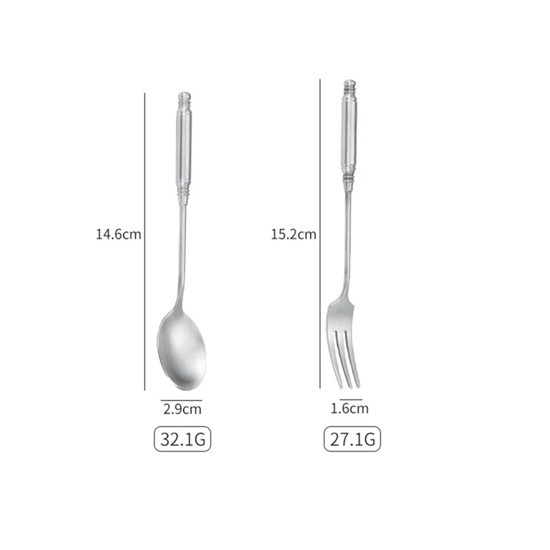 304 Stainless Steel Spoon Fork European Style Retro Palace Style Cylindrical Handle Coffee Spoon Dessert Fork For Household