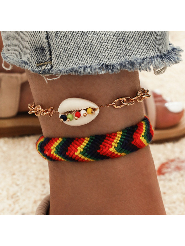 Bohemian Woven Colorful Rope Shell Tassel Anklet