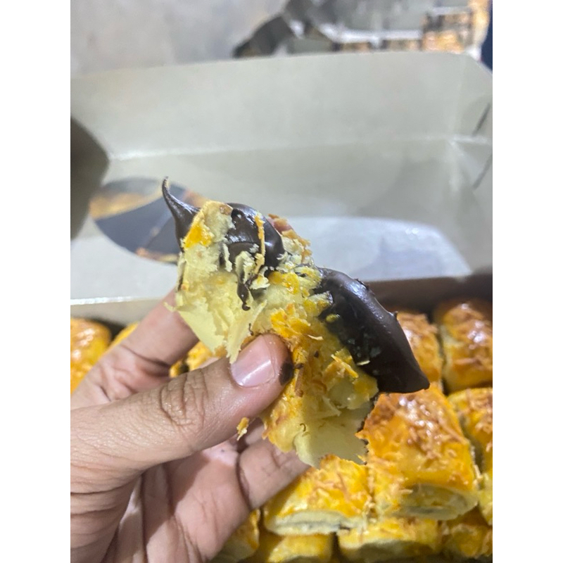 Terbuat dari kulit Pastry dengan isian pisang coklat dan keju yang crispy di luar lumer di mulut , cocok banget buat teman nyemil ketika nonton drakor dan santai bersama keluarga Bolen pisang merupakan produk makanan olahan yang berbahan dasar pisang yang dipadukan dengan berbagai varian rasa yang dikemas dengan kemasan kekinian. Bahan dasar yang digunakan pisang karena bahan dasarnya mudah ditemui