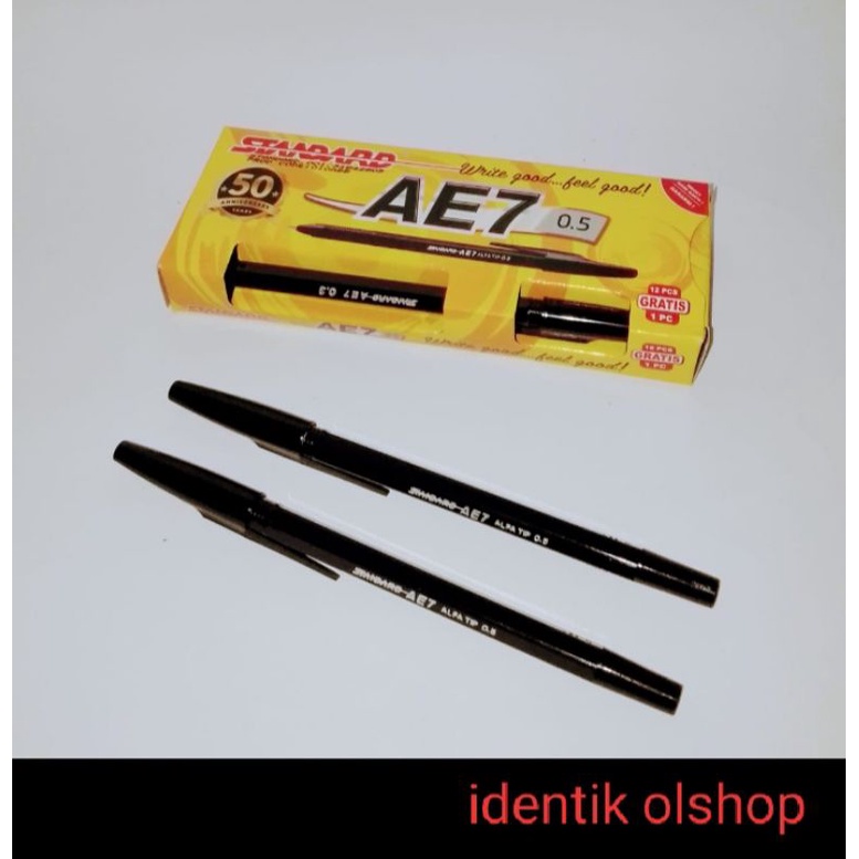 Bolpoint standard AE7 tersedia dalam tiga warna hitam merah dan biru