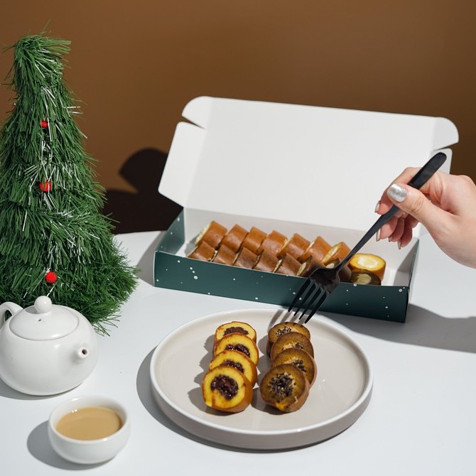 Bolu Gulung Mini - Base (bolu) rasa Mocca, dengan isi Rasa: