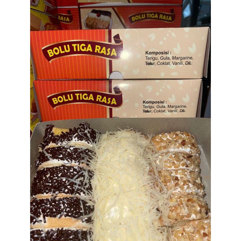 Bolu Tiga rasa box besar ya. rasa enak & manis.