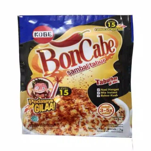 Bon Cabe dengan cabe kering asli , menghasilkan sensasi pedas yang luar biasa .