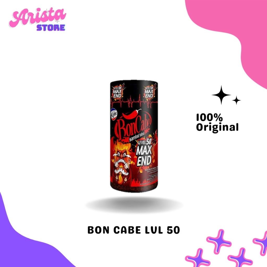 Bon cabe kering berbumbu terbuat dari cabe kering pilihan, dengan rasa pedas yang mantap. Praktis dibawa saat berpergian. Taburkan boncabe diatas nasi hangat, bakso, mie instant, sup atau hidangan favorit anda lainnya. Rasa pedas yang mantap akan membuat