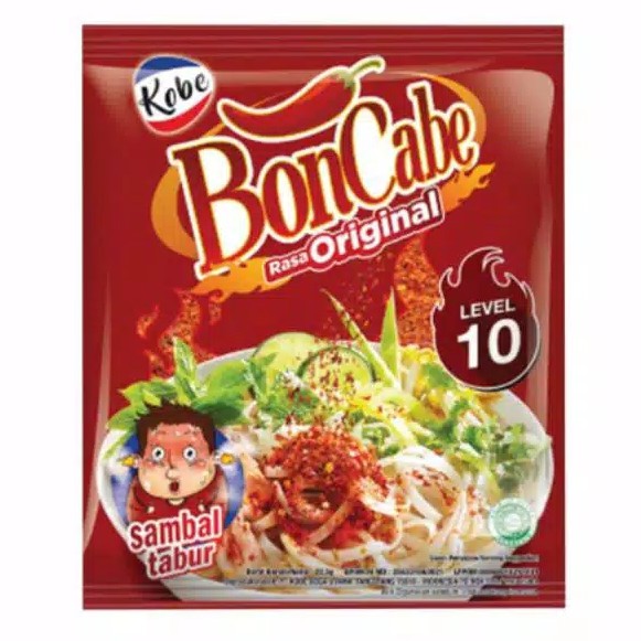 Bon Cabe Sambal tabur rasa original level 10. Kemasan sachet renceng isi bersih 7.5 gr.