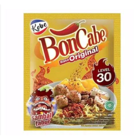 Bon Cabe Sambal tabur rasa original level pedas 30. Kemasan sachet renceng isi berat bersih 6 gr.