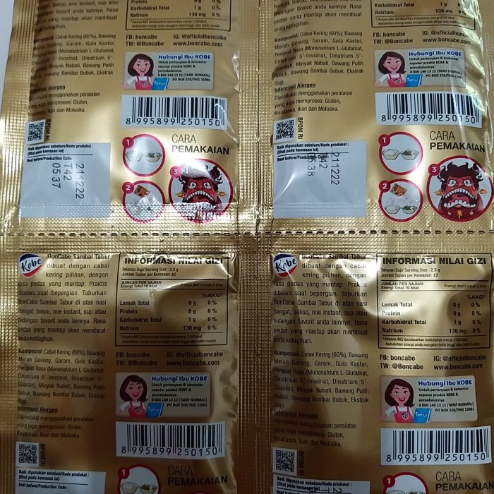 Bon Cabe sambal tabur dibuat dengan cabai kering pilihan, dengan rasa pedas yang mantap. Praktisa dibawa saat bepergian. Taburkan BonCabe diatas nasi hangat, bakso, mie instant, sup atau hidangan favorit lainnya. Rasa pedas yang mantap akan membuat anda ketagihan.