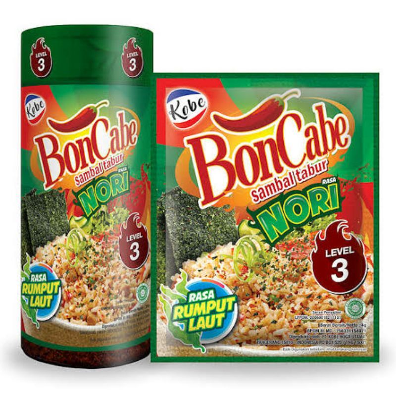 ECER Kobe Bon Cabe Nori Rumput Laut Level 3 Sambal Tabur Pedas Sachet Halal MUI - 4gr