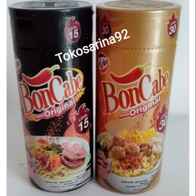 Bon cabe merupakan cabe tabur yang biasanya digunakan untuk memberikan rasa pedas dan gurih pada makanan. Tersedia 2 level pedas yakni level 15 dan level 30.