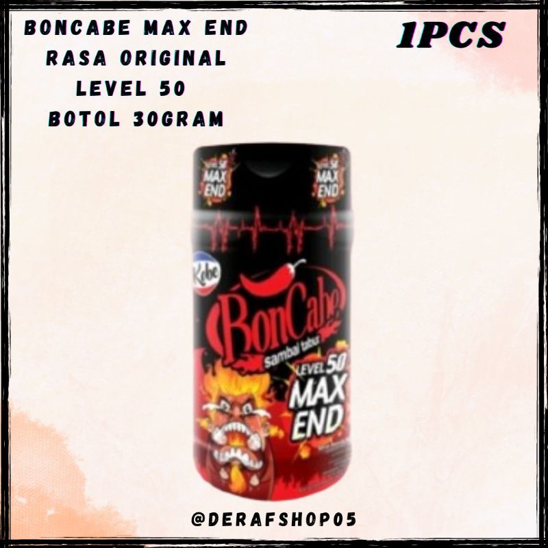 BonCabe level 50 Max End! Maximize to the end! Produk terbaru dari BonCabe ini didedikasikan khusus buat kamu yang suka tantangan, dan mau ngerasain sensasi pedas yang MAXIMAL.