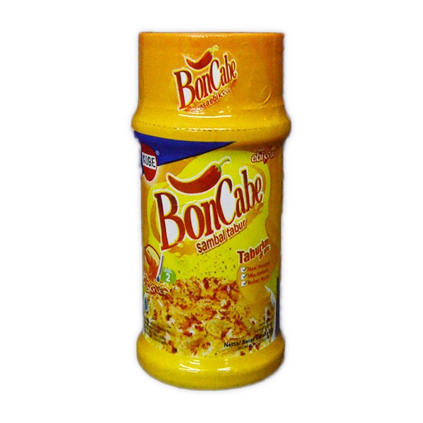Boncabe adalah cabai tabur yang diolah dengan teknologi canggih dengan bahan pilihan untuk menghasilkan rasa yang bersahabat bagi tubuh, dan tentunya tidak perlu lagi kerepotan mencari cabai cukup tabur langsung pedas.