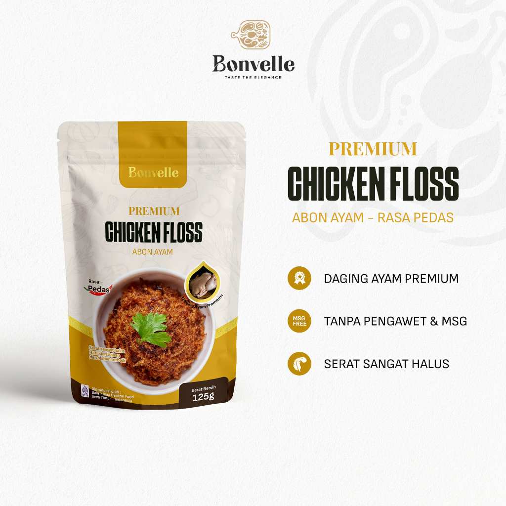 Abon ayam premium Bonvelle diolah dari 100% daging ayam segar pilihan, tanpa campuran tepung. Diproses secara higienis dengan resep tradisional yang menghasilkan rasa gurih khas, tekstur kering renyah, dan tidak amis.