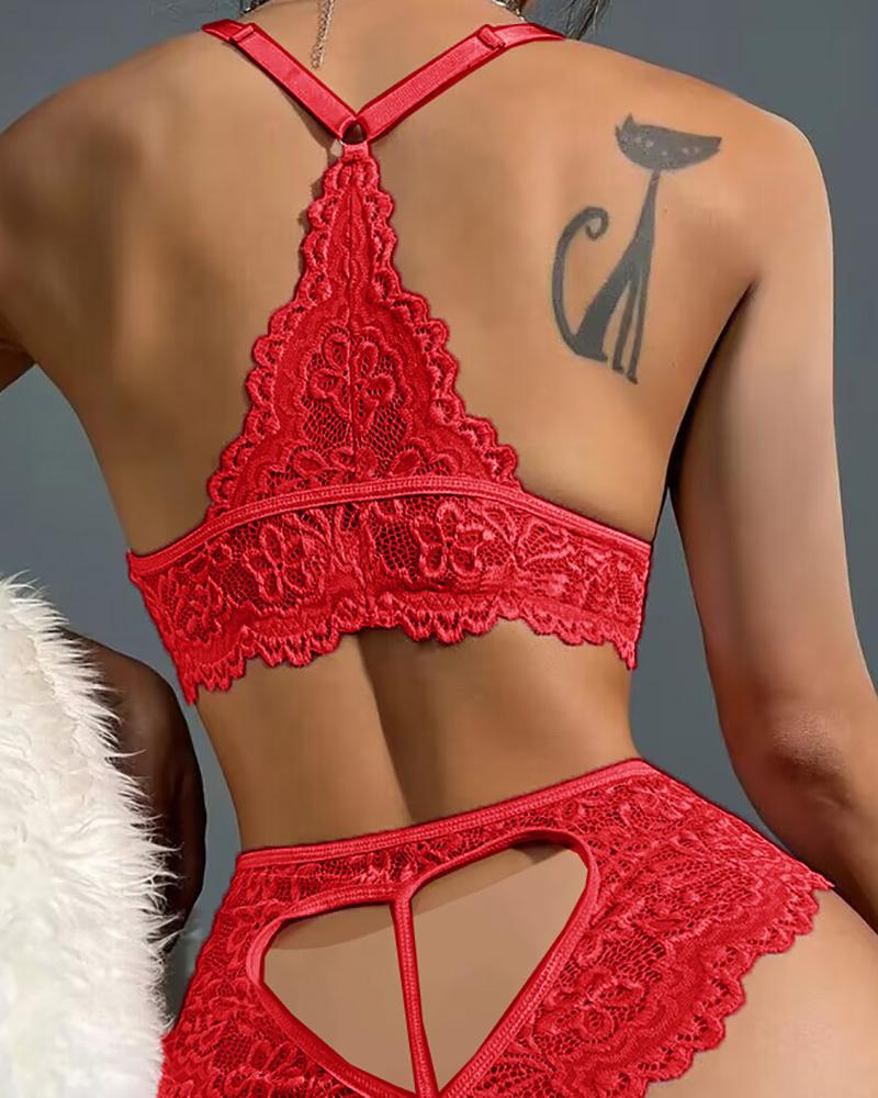 Bow Decor Cutout Lace Lingerie Set, Red