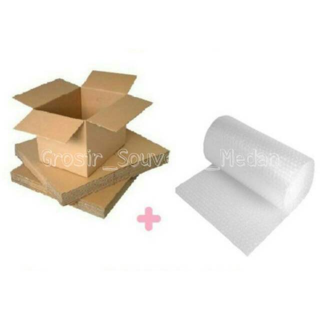 Kardus + Bubblewrap ukuran sedang (tidak untuk souvenir tempat pensil) , untuk muatan 100pcs (ukuran kecil).