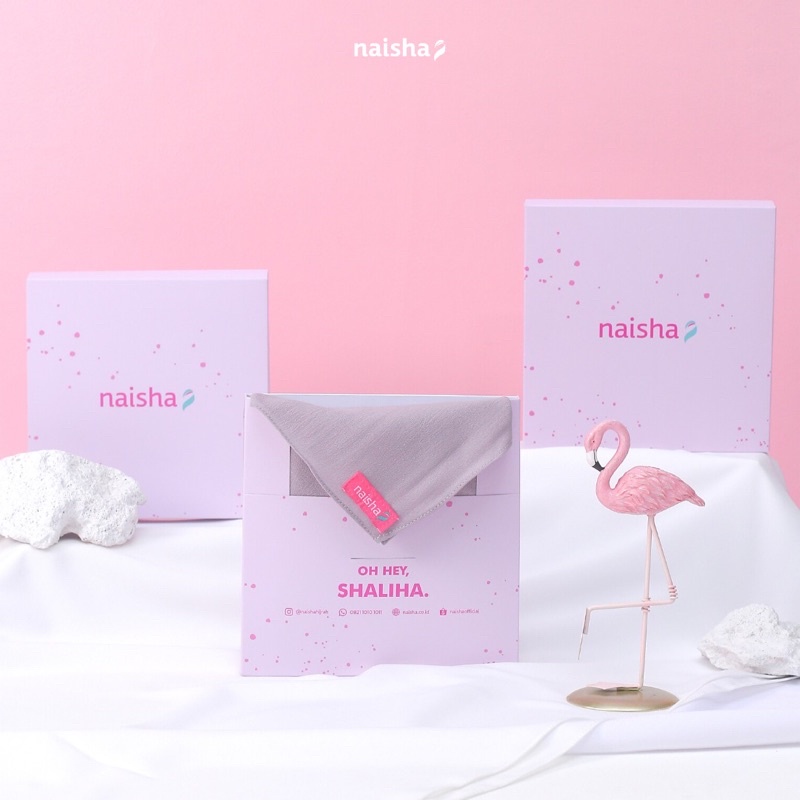 Box Khimar Naisha menggunakan bahan ivory berbentuk persegi dengan ukuran 18 cm x 18 cm x 2 cm. Box ini bisa memudahkan #Naishamate untuk memberikan hadiah/hampers kepada orang tersayang