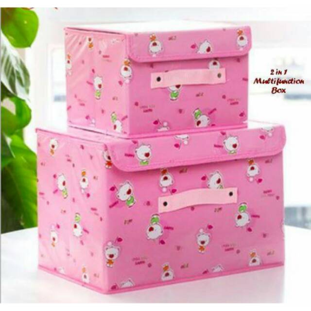2 in 1 Multifunction box adalah kotak penyimpanan dengan motif menarik. 1 set terdiri dari 2 box dengan ukuran berbeda.