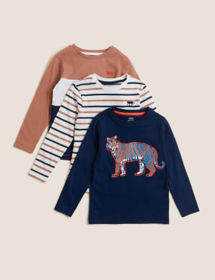 For seriously fierce fashion, treat kids to this 3-pack of pure cotton tiger tops. They're cut to a comfy regular fit with long sleeves. The pack includes an assortment of styles, including striped and colour block designs with tiger embroidery at the chest. One features a large tiger graphic, complete with flocked stripes for a cool textured look. StayNew™ technology maintains the colour and finish for longer. All of the cotton for our clothing is sustainably sourced and always will be.