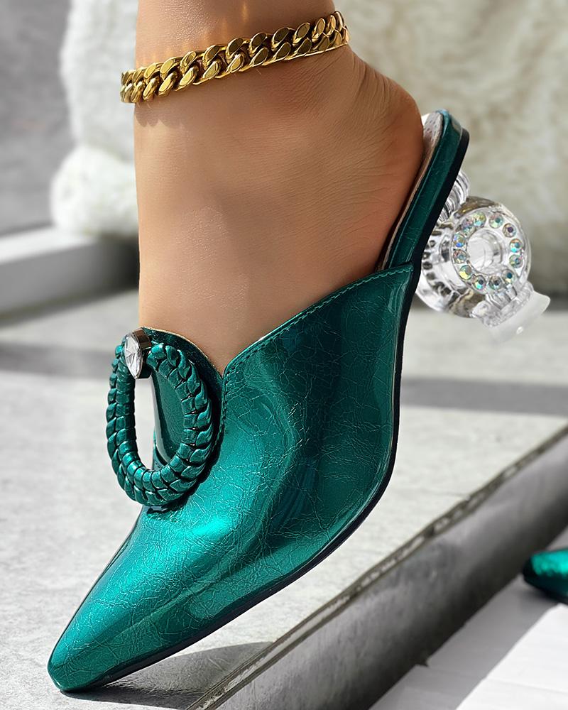 Braided Point Toe Clear Chunky Heeled Sandals, Green