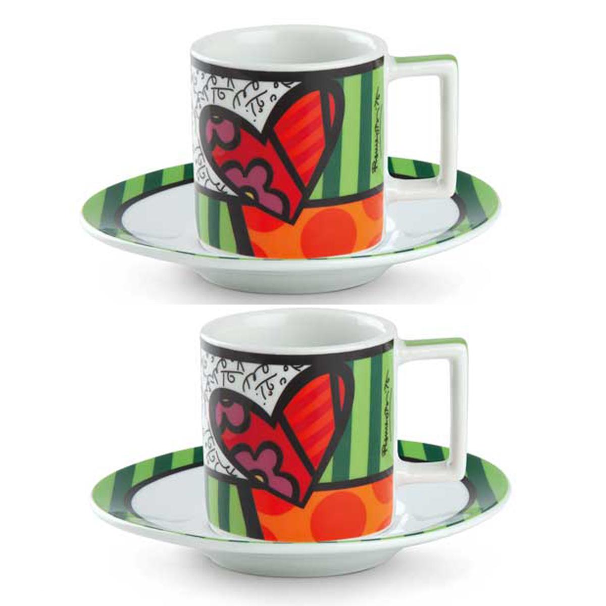 Britto [R6866] - Набор из 2 керамических кофейных чашек Britto оранжево-зеленый (сердце) - 6x6см