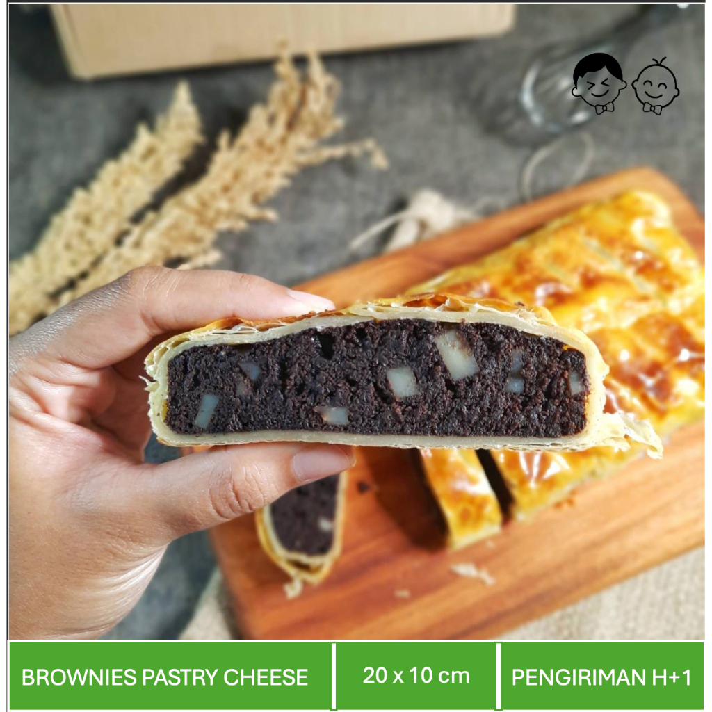 Brownies Dark Coklat yang manis dan legit dibalut dengan Pastry Puff yang gurih dan crunchy. pokoknya sekali coba pasti ketagihan.