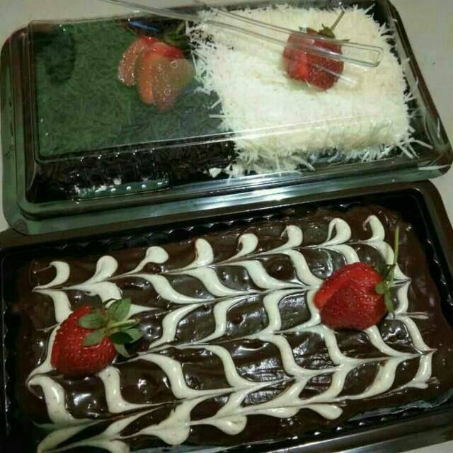 Brownis ukuran 22cm topping coklat keju dan Chocomaltin hias tiramisu