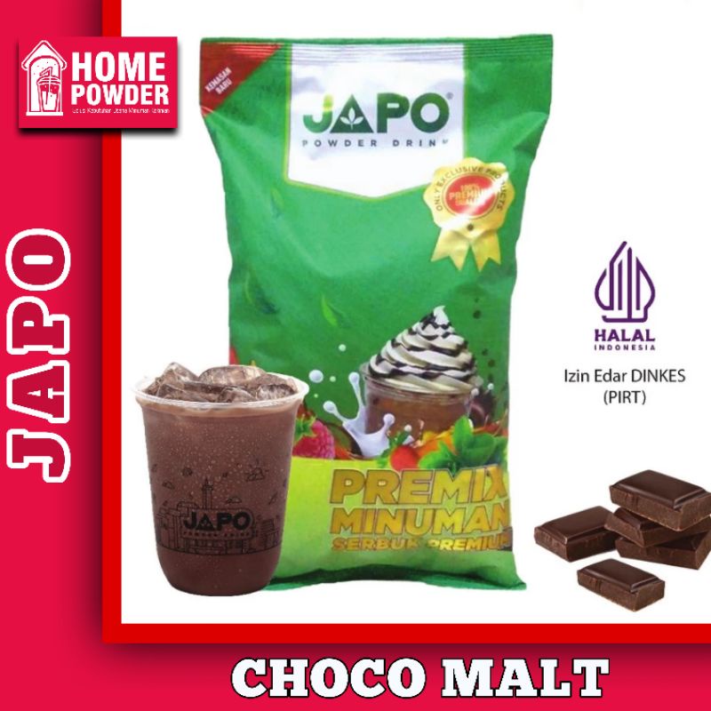 Masukkan powder JAPO mix gula 35 gr (bubuk disesuaikan dengan ukuran gelas) dan air panas sekitar 125 ml, kemudian masukkan es batu secukupnya (kurang lebih ½ - 1 cup kurang). Blend atau shake atau aduk dengan merata dan bisa tambahkan alternatif seperti susu kental manis atau susu UHT dan topping sesuai selera. Minuman JAPO siap disajikan.