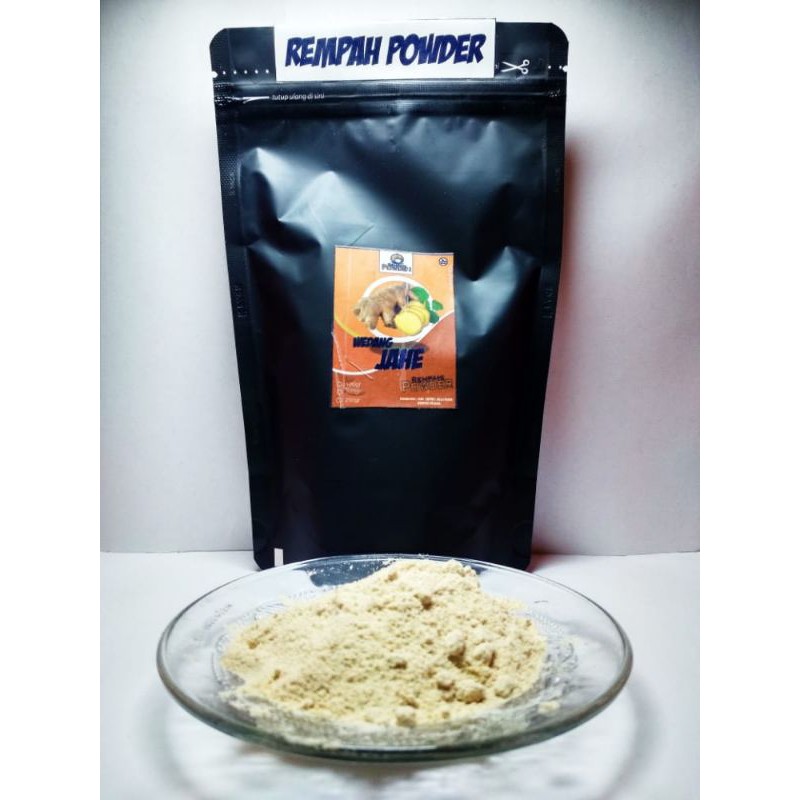 Bubuk Jahe emprit tanpa pengawet, pemanis dan pewarna buatan.