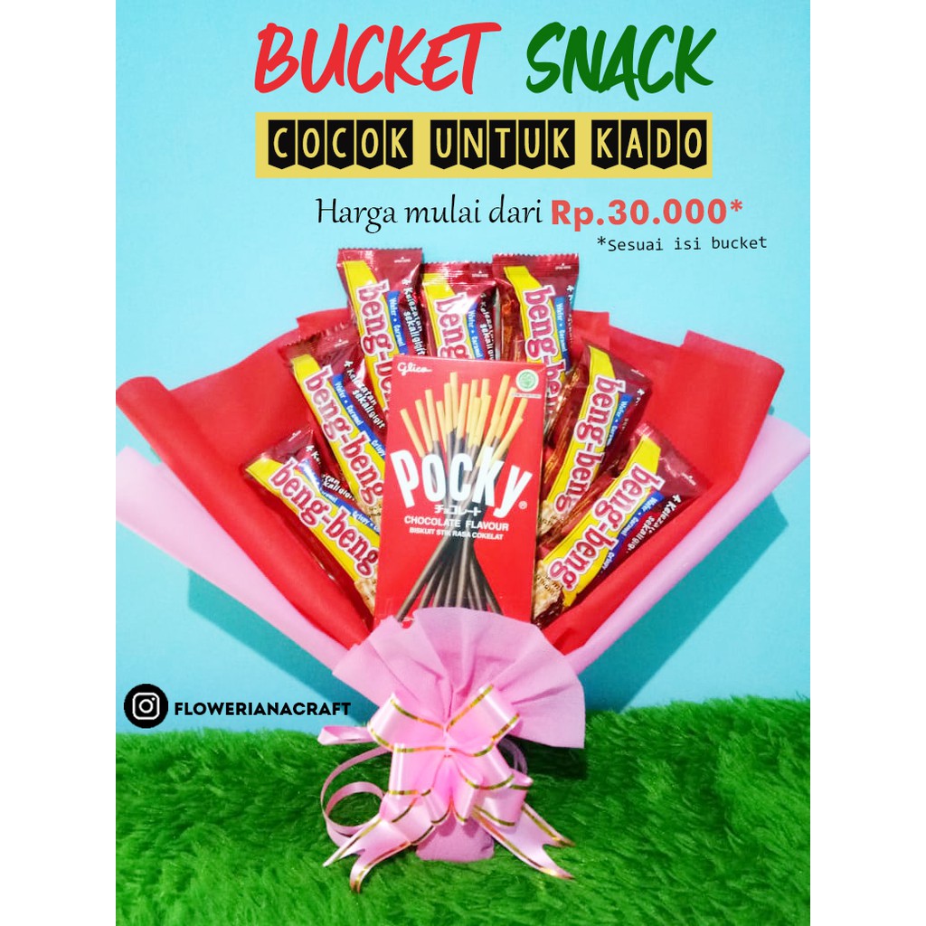 Bucket snack beragam harga dan isi, bisa untuk hadiah wisuda, sidang, ulangtahun, perlombaan, dll