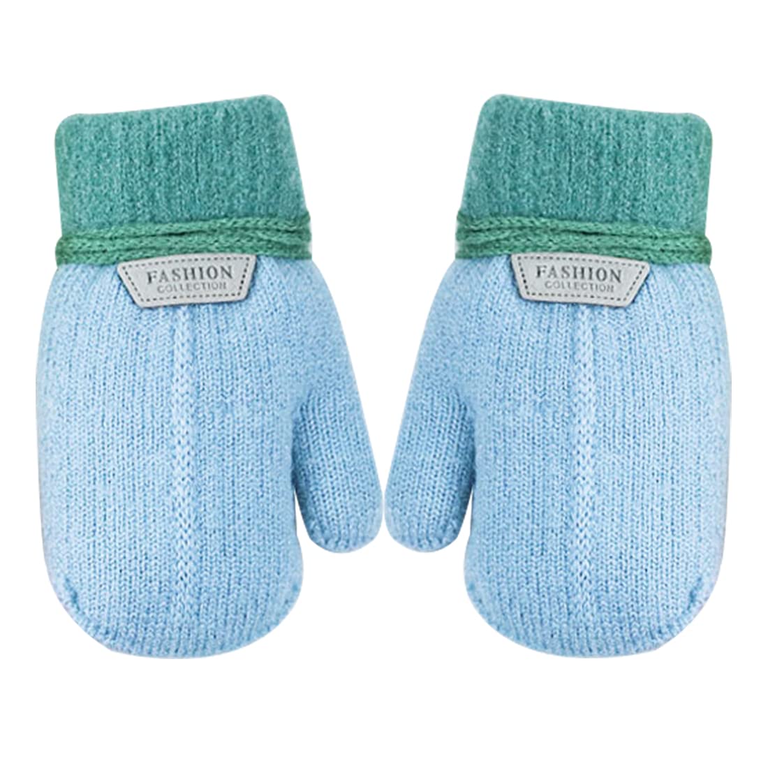 Buffydeer Вязаный Возрастной с Милыми Зимними Перчатками для Девочек и и Идеально для Игры в и Варежки для Детей Детского Сада, Унисекс, 1-4, На шнурке, синий