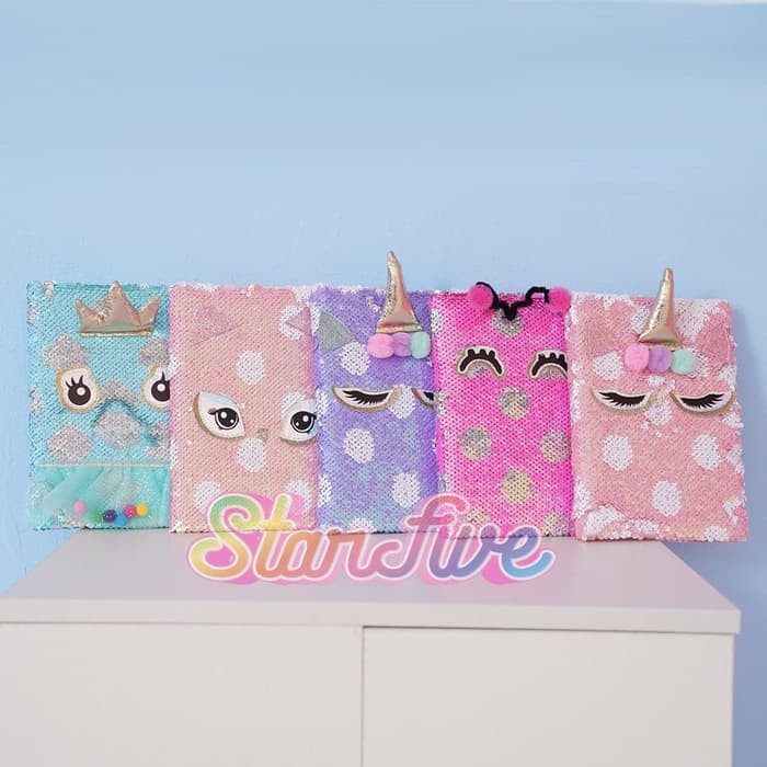 Produk ini cocok banget buat si kesayangan yang suka menulis atau menggambar doodle. Di dalam notebook ini ada bermacam-macam tipe halamannya seperti garis, kotak kecil, dan polos. Jadi ga bosen yah :) Bagian luar buku dibungkus dengan sequin yang tentunya bikin si kesayangan lebih suka menulis dibanding buku biasa. Bukunya pun lumayan tebal yah moms, ada 80 sheets dengan ukuran A5.