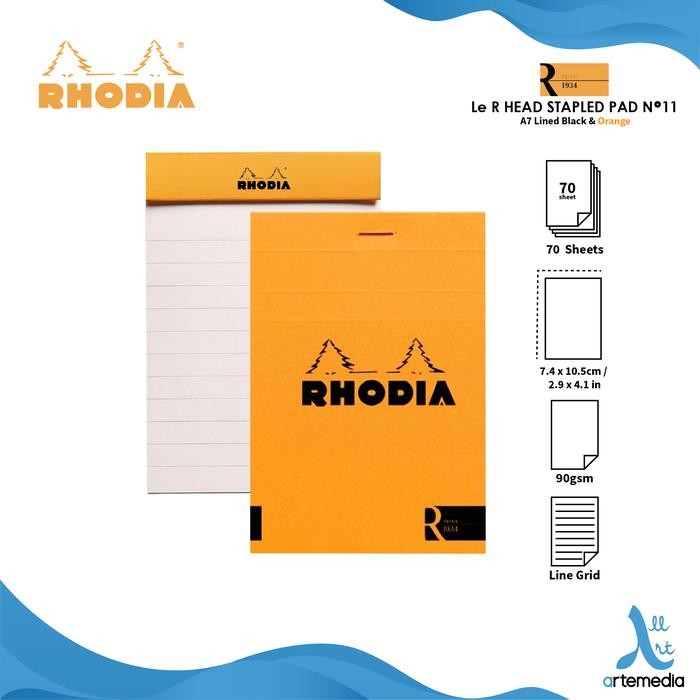 Buku Catatan Rhodia Le R A7 Head Stapled Pad Nᵒ11 Notepad*** Harga untuk 1 buah Notebook. Bukan Set.*** Harap pilih tipe kertas dan warna cover yang diinginkan pada bagian varian.Tersedia 2 pilihan tipe kertas dan warna cover :- LINED ORANGE- LINED BLACKUkuran : A7 - 7,4 x 10,5 cmIsi : 70 lembarBerat kertas : 90 gRuling : LinedWarna kertas : IvoryDetail kertas : Brushed ivory vellum Clairefontaine paperTipe Cover : Soft Touch Coated CoverBASICS 90G STAPLED PADS - LE R- Micro-perforated sheets / lembar berlubang mikro agar mudah dilepas dan disobek- Brushed ivory vellum Clairefontaine paper- Sangrif : staples tidak muncul di belakang- Penutup belakang yang kaku membuat penulisan menjadi mudah dan portabelRhodia notes memberikan banyak hal; Kualitas dan hasil akhir yang tak tercela dengan keahlian kertas yang nyata. Kombinasi dari penemuan dan inovasi (dengan cover yang tahan air, foldover covers, teknologi "Sangrif" dan lembaran sobek berlubang mikro). Dinamis, namun elegan. Komponen-komponen inilah yang menciptakan esensi dari catatan Rhodia, buku catatan yang tradisional namun kontemporer dan bertahan sejak 1934.