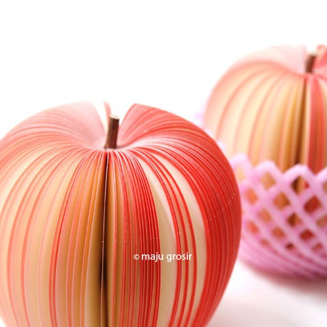 Buku notes unik dengan aneka bentuk buah APEL. Anda bisa memakai sendiri, menjadikannya hiasan meja kerja, dan tentu saja juga sesuai sebagai suvenir.