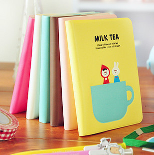 Buku notes motif "Milk Tea", yang dilengkapi sampul plastik.