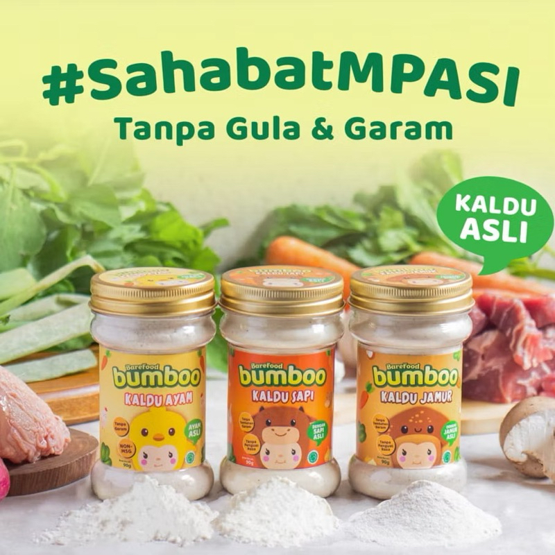 Produk baru dari Barefood! BUMBOO Kaldu Anak! Dibuat dari 100% ayam & jamur asli dengan bahan alami yang aman untuk dikonsumsi. Tidak ditambahkan gula dan garam seperti kaldu non-msg lainnya sehingga lebih baik untuk si kecil yang tidak boleh mengkonsumsi terlalu banyak garam.