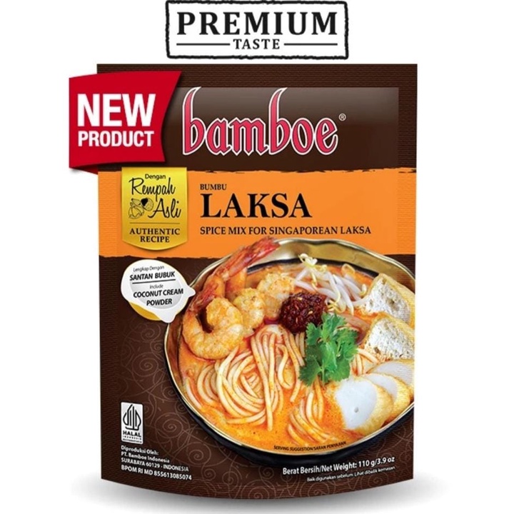 Laksa merupakan salah satu masakan favorit wisatawan ketika berkunjung ke Singapore, bahkan kebanyakan penduduk Asia menjadikan Laksa sebagai comfort food. Sekarang bisa merasakan kelezatan Laksa Singapore tanpa jauh-jauh ke Singapore. Bamboe Premium Laksa Singapore ini memiliki rasa gurih dan juga harum yang aromatik khas dari bumbu rempah-rempah laksa.