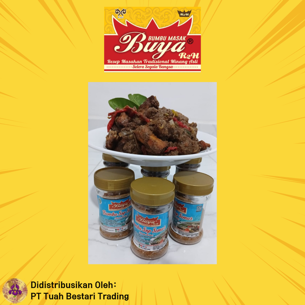 Bumbu Masak Buya merupakan brand bumbu masak tradisional khas Minang yang sudah berdiri sejak tahun 1993. Bumbu Masak Buya telah mengikuti berbagai pameran dagang internasional dengan jaringan kemitraan yang luas serta jumlah ekspor hampir ribuan bungkus, serta reputasi Bumbu Masak Buya yang sudah teruji untuk pasar lokal dan internasional, kini kami hadir untuk menjangkau pasar digital.