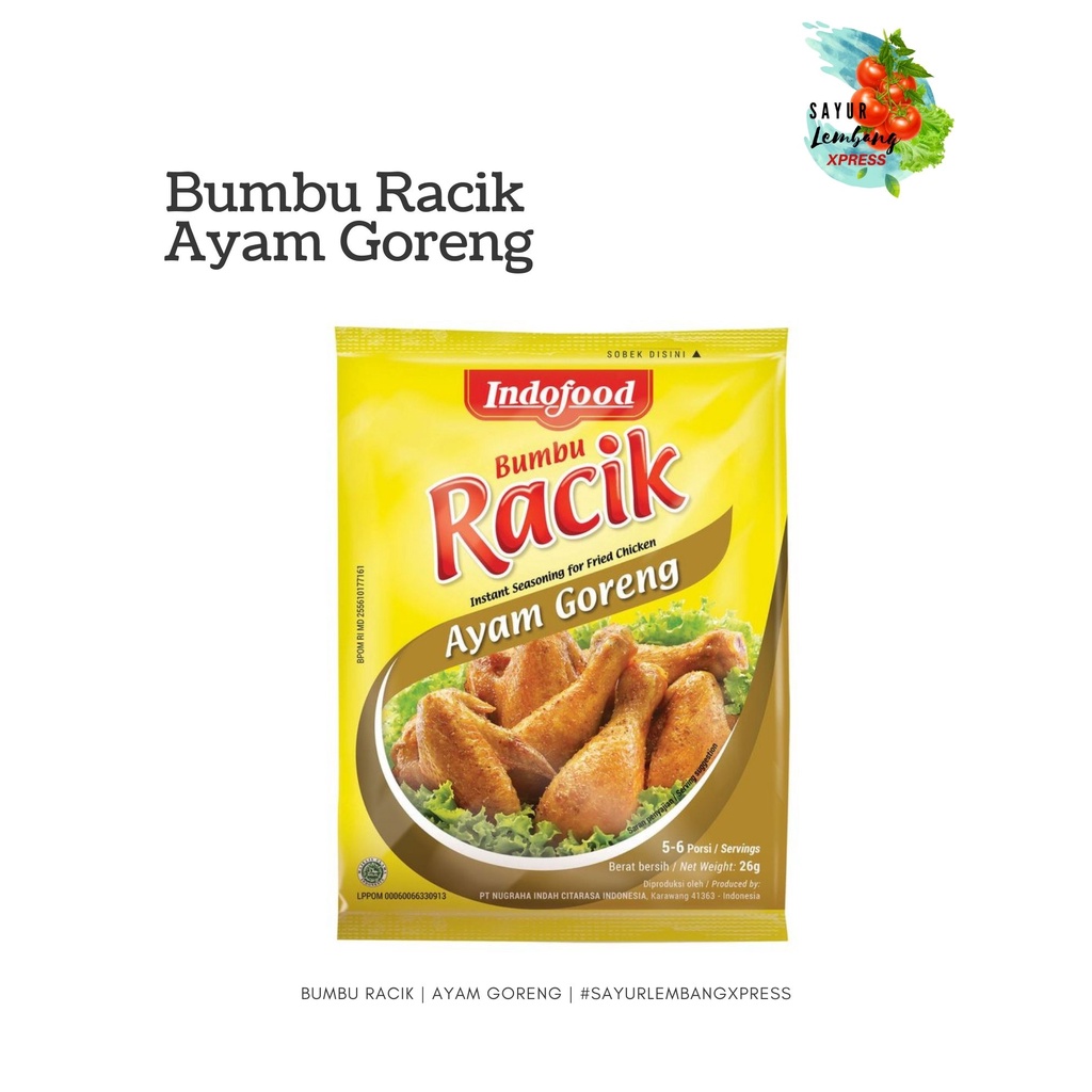 • 1 bungkus Bumbu RACIK Ayam Goreng cukup untuk 1x masak untuk 1 kg Ayam (10 - 12 potong) 2 porsi ayam goreng.