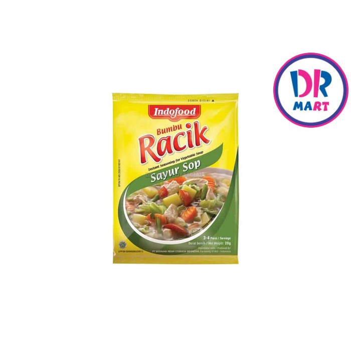 Bumbu Racik Indofood Sayur Sop terbuat dari bumbu dan rempah asli yang akan membuat sayur sop Anda tambah nikmat. Penggunaannya praktis, cepat, dan dapat dibawa kemanapun. Keunggulan :