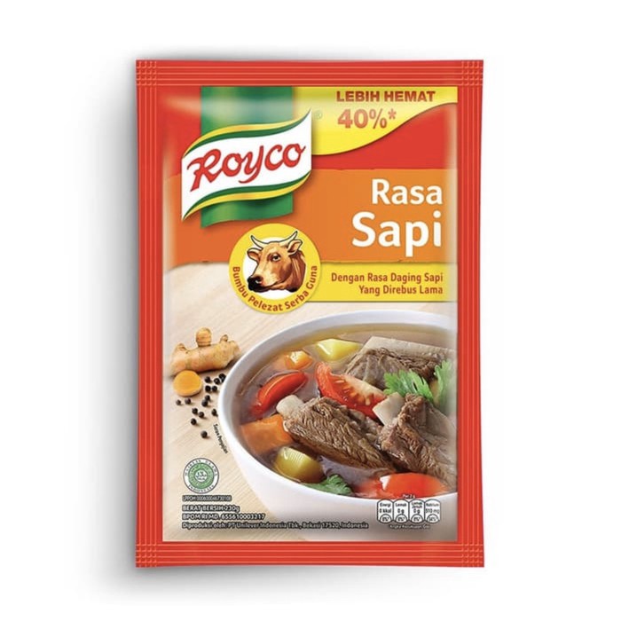 Royco sapi, bumbu penyedap serbaguna yang dapat meningkatkan citarasa masakan Indonesia. Terbuat dari daging ayam dan rempah berkualitas untuk menghasilkan kaldu yang mantap, penuh citarasa. Tambahkan Royco untuk meningkatkan citarasa masakan Indonesia anda.