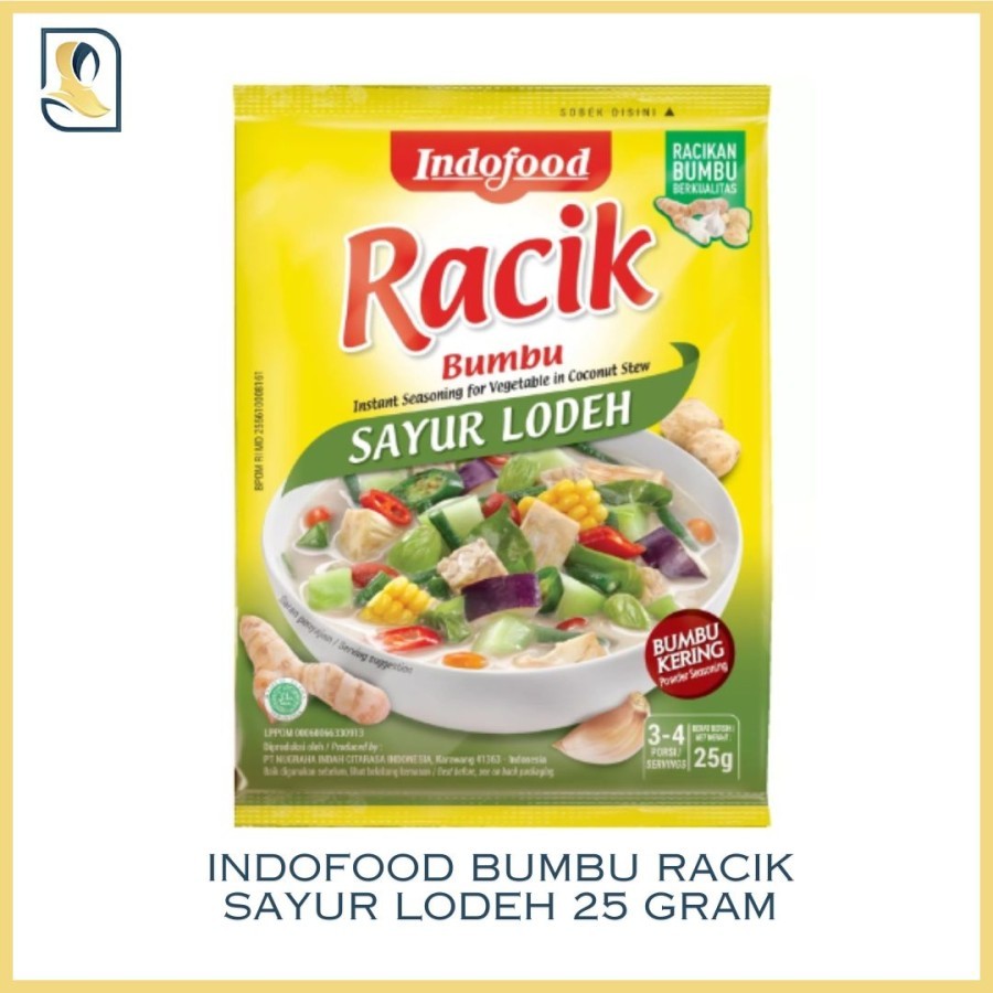 Indofood Racik Sayur Lodeh merupakan bumbu instan untuk memasak sayur lodeh dengan praktis tanpa ribet. Bumbu ini terbuat dari gula, garam, penguat rasa, bumbu dan rempah-rempah, terasi, dan perisa identik alami daging ayam. Indofood Racik Sayur Lodeh aman untuk dikonsumsi oleh anggota keluarga karena sudah tersertifikasi Halal dan BPOM RI.