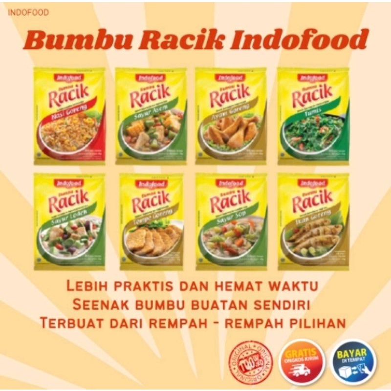 Dengan Bumbu Racik, Anda dapat menghadirkan masakan harian secara praktis, cepat dan ekonomis. Cukup menyiapkan bahan-bahan dan serahkan urusan bumbu pada varian Bumbu Racik Indofood untuk makanan rumah dengan rasa asli, sehat dan lezat.... selezat buatan sendiri!