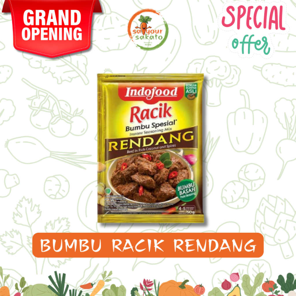 Indofood Bumbu Instan Rendang adalah salah satu bumbu instan yang dipersembahkan oleh Indofood untuk masakan rendang yang lezat dan nikmat Bumbu Indofood ini diracik dari perpaduan bumbu dan rempah rempah alami yang segar Perpaduan tersebut dihasilkan dari pasteurisasi yang menjaga kesegaran rempah